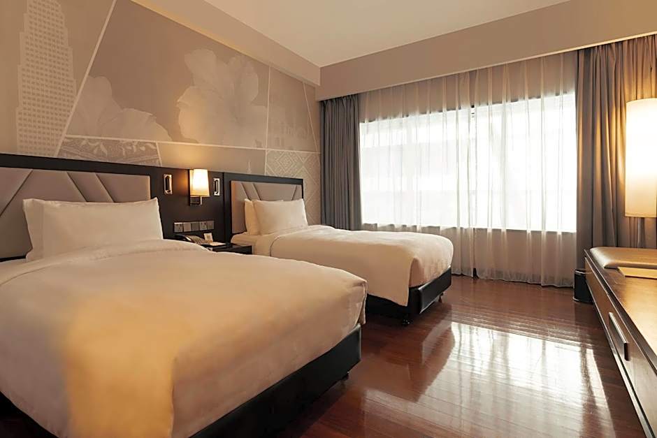 This air-conditioned deluxe room opens up to views of the city. It is fitted with a satellite TV, tea/coffee maker, mini-bar and safe. The private bathroom includes shower facilities, a hairdryer and free toiletries. A pillow menu is available.This twin room features a soundproofing, air conditioning and DVD player.